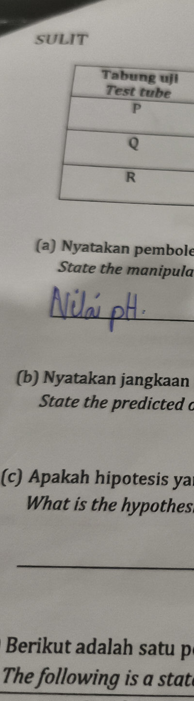 Tabung uji Test tube P Q R (a) Nyatakan | StudyX