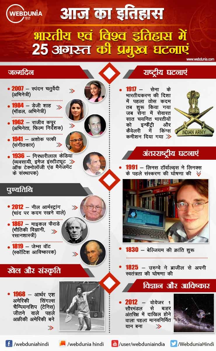 आज का इतिहास : भारतीय एवं विश्व इतिहास में 25 अगस्त की प्रमुख घटनाएं ...