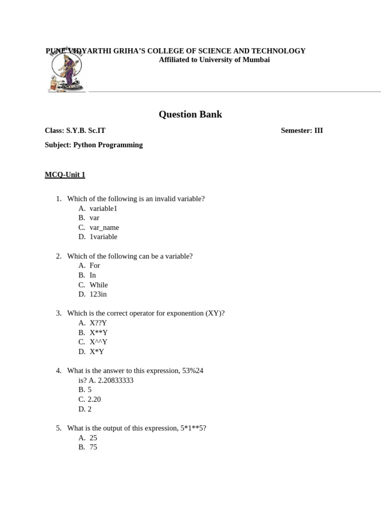 SYIT Sem 3 Question Bank Python Programming | PDF