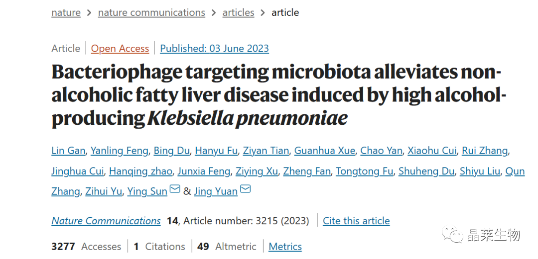 国自然热点“肠道菌群”之 以微生物群为靶向的噬菌体可缓解高产酒精肺炎克雷伯菌引起的非酒精性脂肪性肝病 - 企业动态 - 丁香通