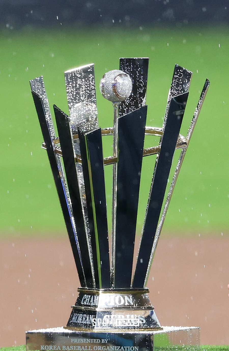 [포토S] 비에 젖은 한국시리즈 우승트로피