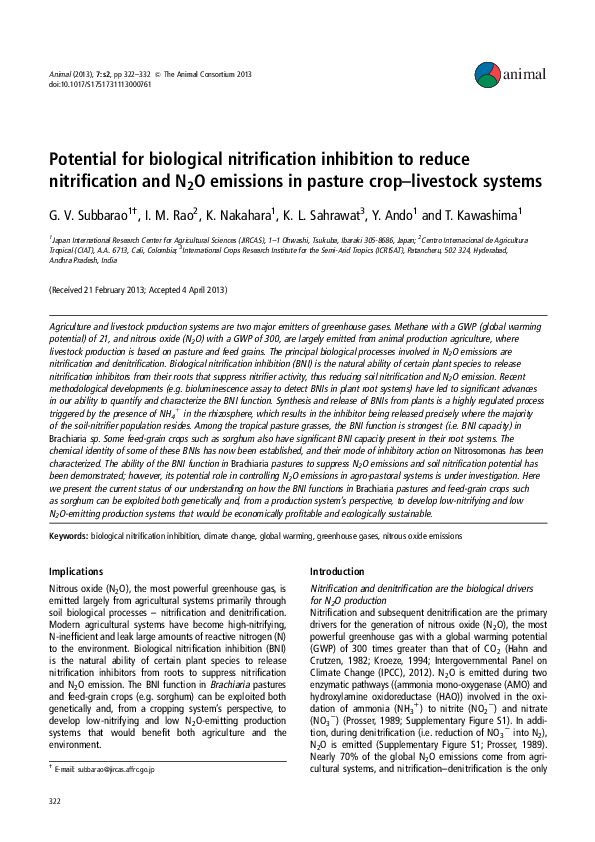 (PDF) Potential for biological nitrification inhibition to reduce ...