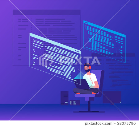 Programmer coding. Young man freelancer working... - Stock Illustration ...
