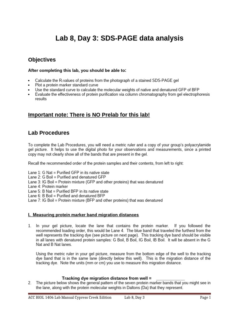 Lab 8 Day 3 SDS PAGE Data Analysis | PDF | Gel Electrophoresis ...
