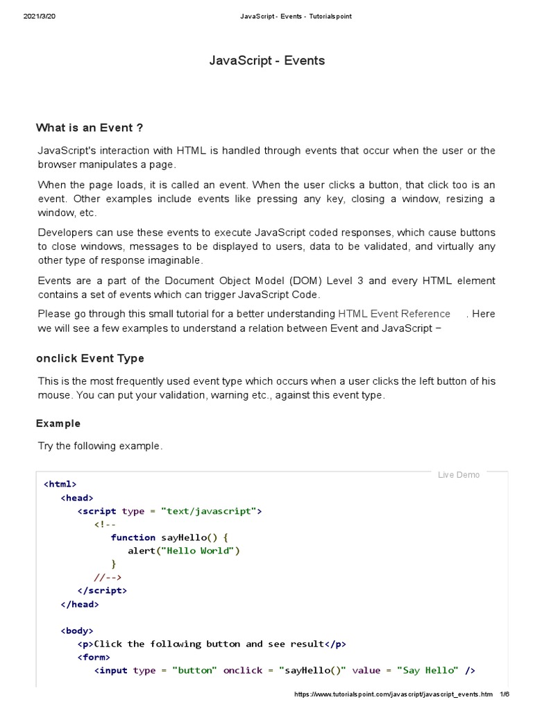 Javascript events - notes - tutorialspoint/javascript/javascript_events ...