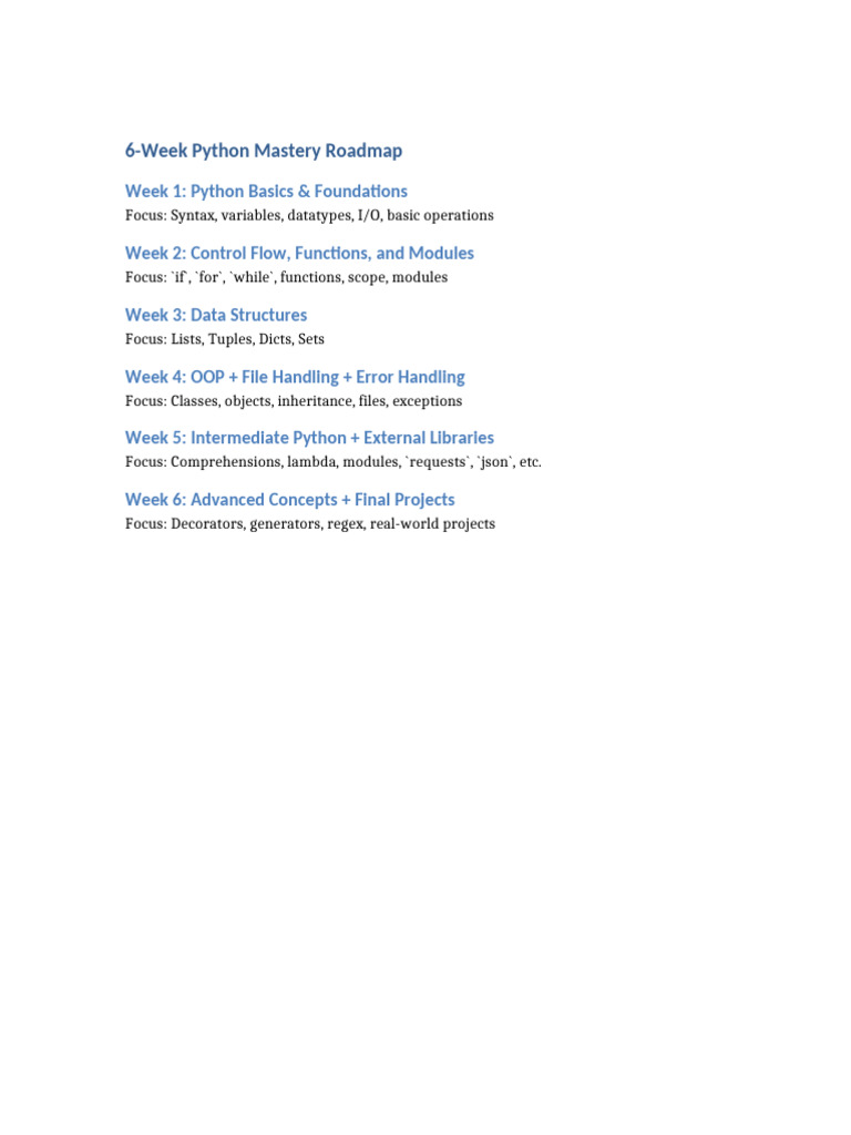 Python 6 Week Roadmap | PDF