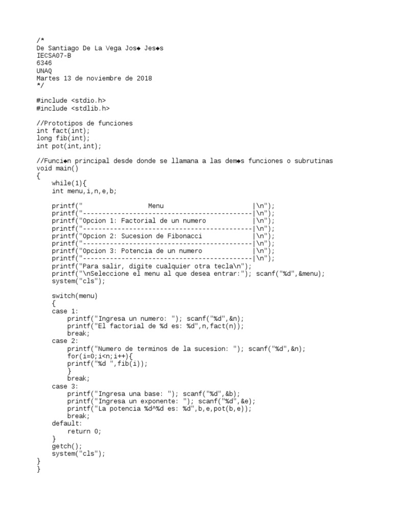 Funciones Recursivas en C: Factorial, Fibonacci y Potencia | PDF