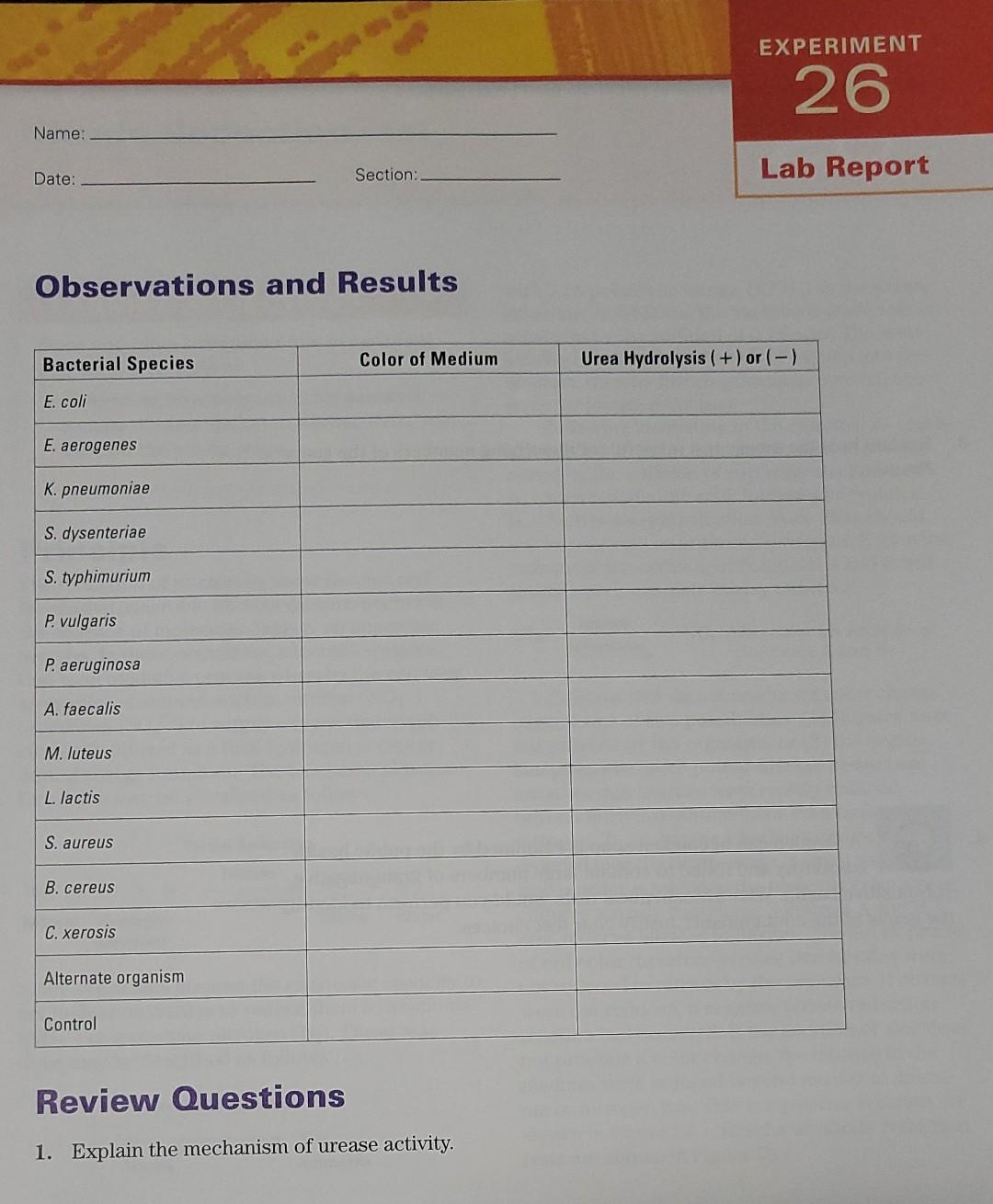 Solved Lab Report 46-Urease TestResults and | Chegg.com