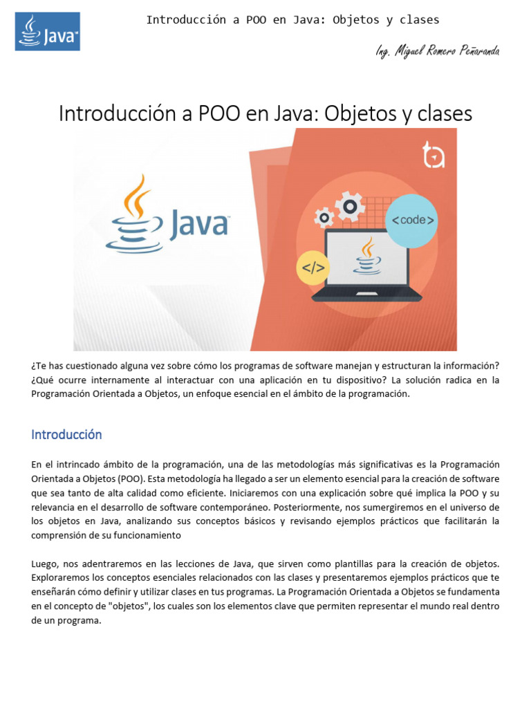 POO en Java: Introducción a Objetos y Clases - Informe Clave - Studocu
