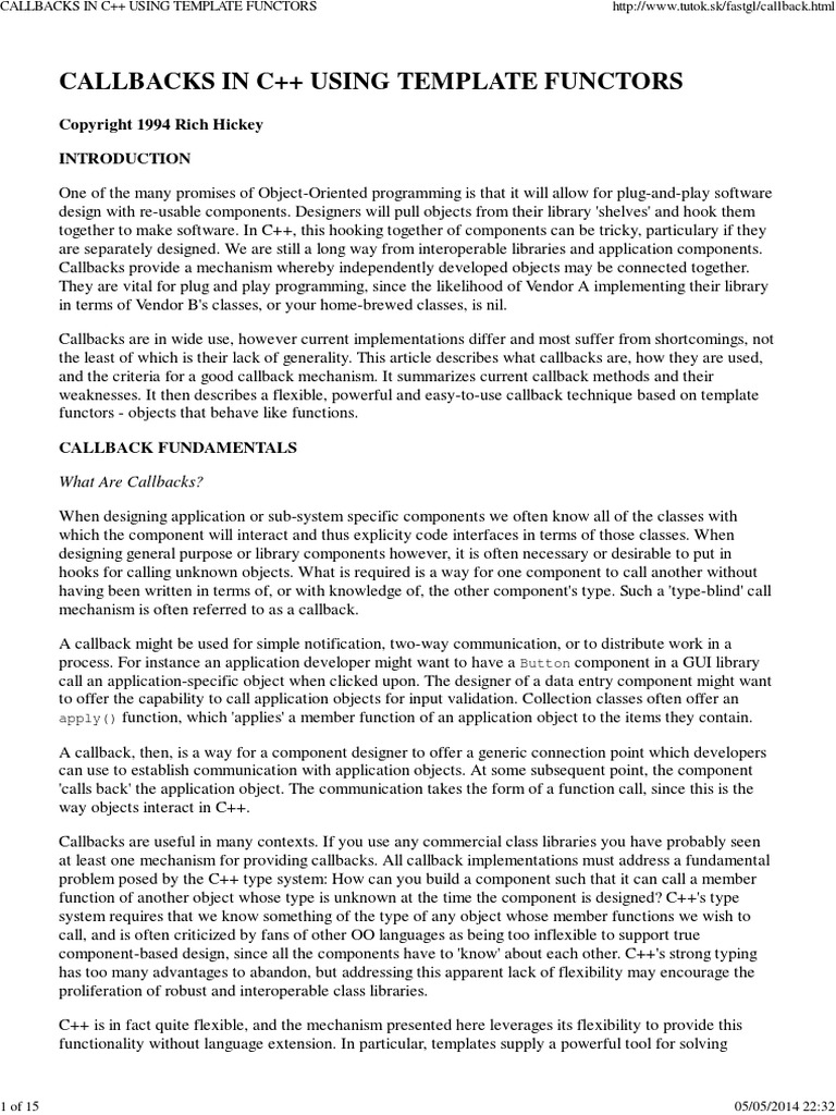 Callbacks in C++ Using Template Functors | PDF | C++ | Class (Computer ...