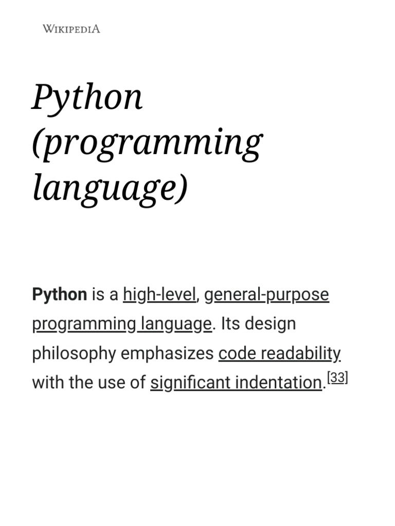 Python (Programming Language) - Wikipedia | PDF | Python (Programming ...