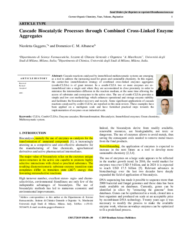 (PDF) Cascade Biocatalytic Processes through Combined Cross-linked ...