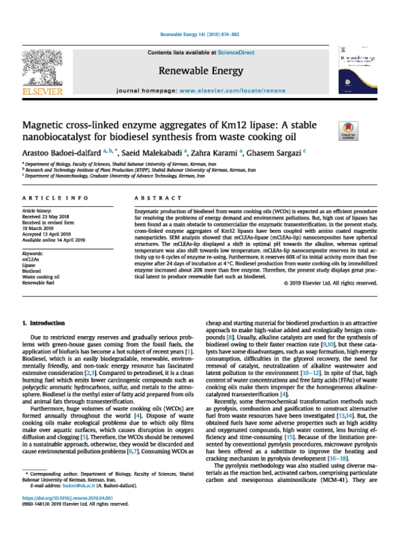 (PDF) Magnetic cross-linked enzyme aggregates of Km12 lipase