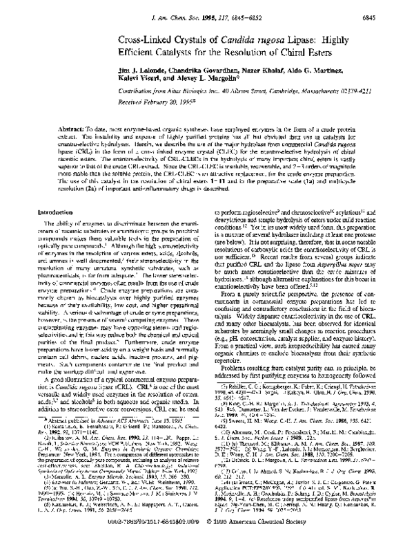 (PDF) Cross-Linked Crystals of Candida rugosa Lipase: Highly Efficient ...