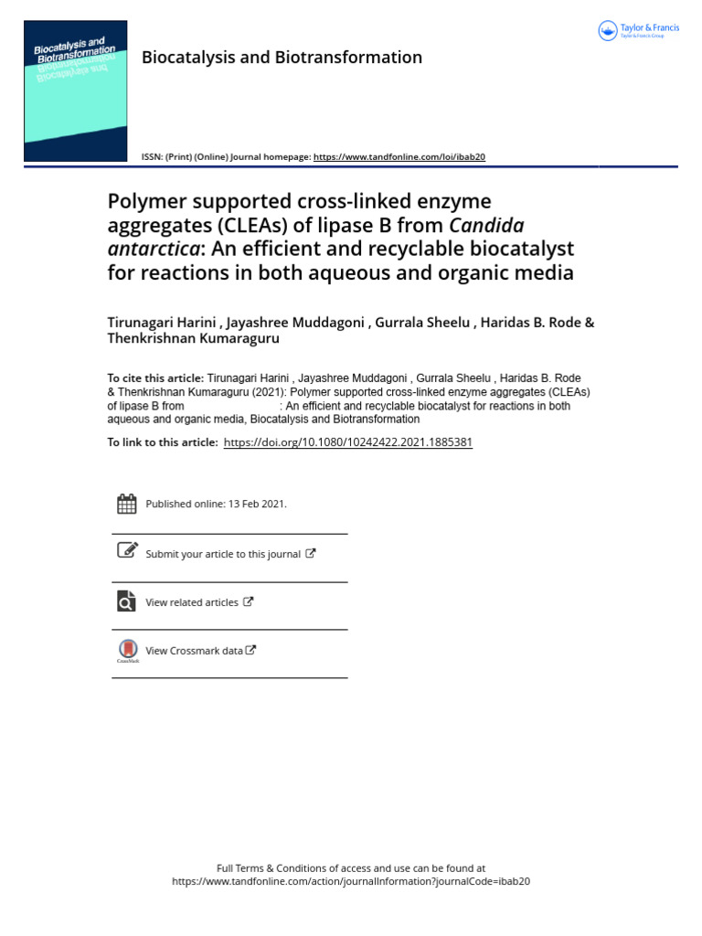 Polymer Supported Cross Linked Enzyme Aggregates CLEAs of Lipase B From ...