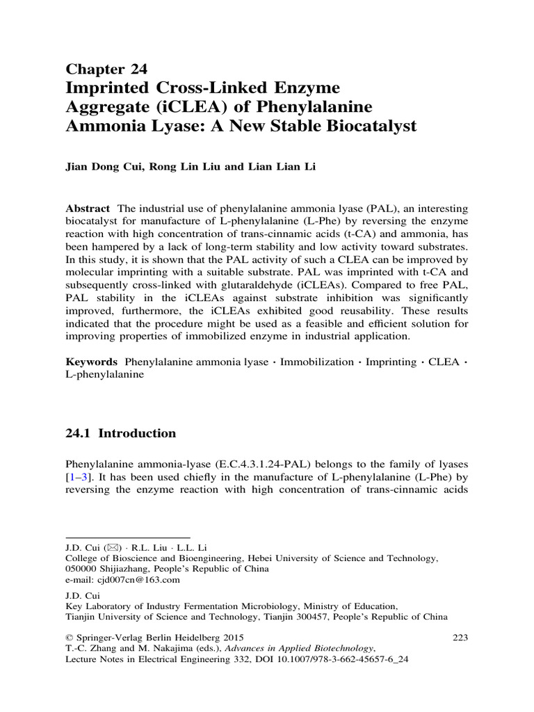 (PDF) Preparation of Stable Cross-Linked Enzyme Aggregates (CLEAs) of a ...