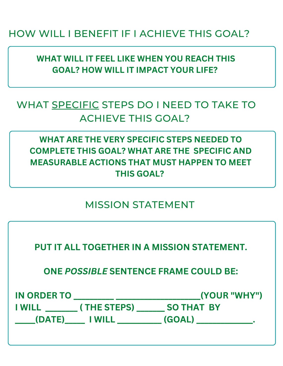 Printable Smart Goals Worksheet PDF | Smart Goal Setting for Students