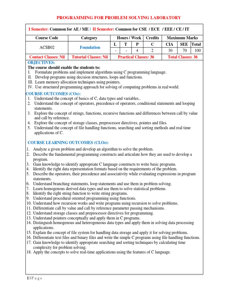 Cse Programming For Problem Solving Laborator Syllabus | PDF | C ...