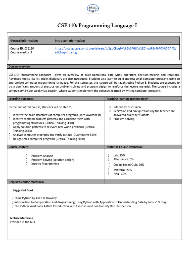 Based on this image's title: “CSE 1201_programming course_outline | PDF | Computer Programming ...”