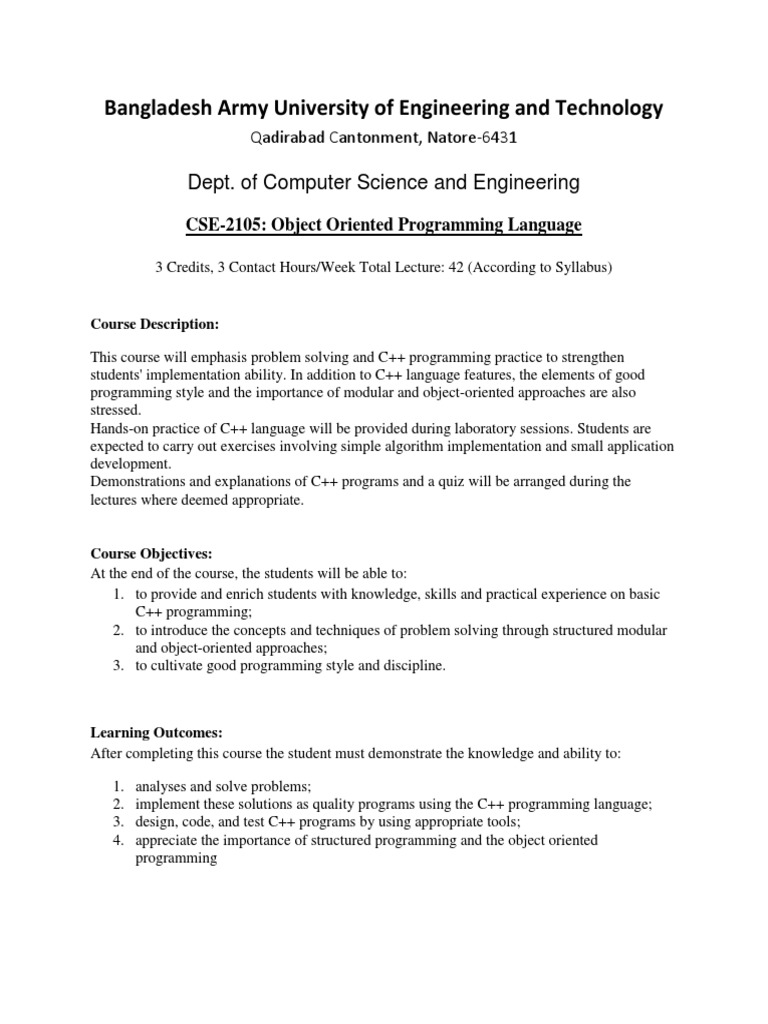 Cse undergrad syllabus - CSE 101 Structured Programming Language 3 ...