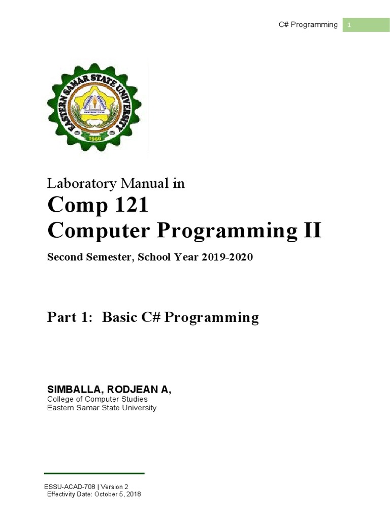 Comp 121 Computer Programming II: Laboratory Manual in | PDF | C Sharp ...