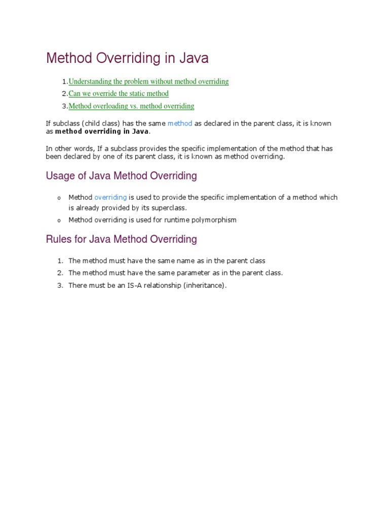 Method Overriding in Java With Example PDF | PDF | Method (Computer ...