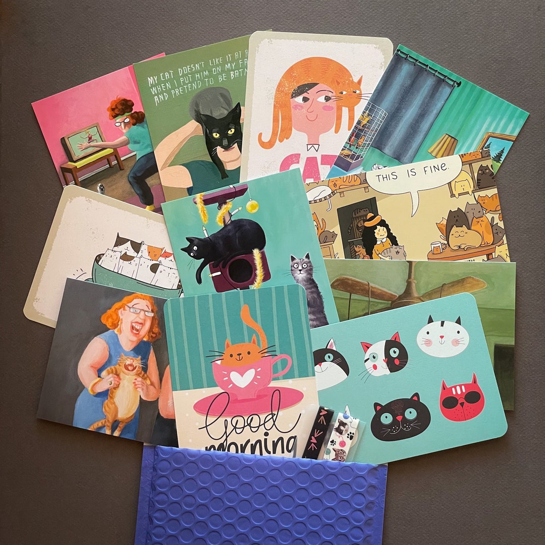 Funny Cats - Cat Lover Postcard Pack - Mix of Cat Postcards, Stickers ...