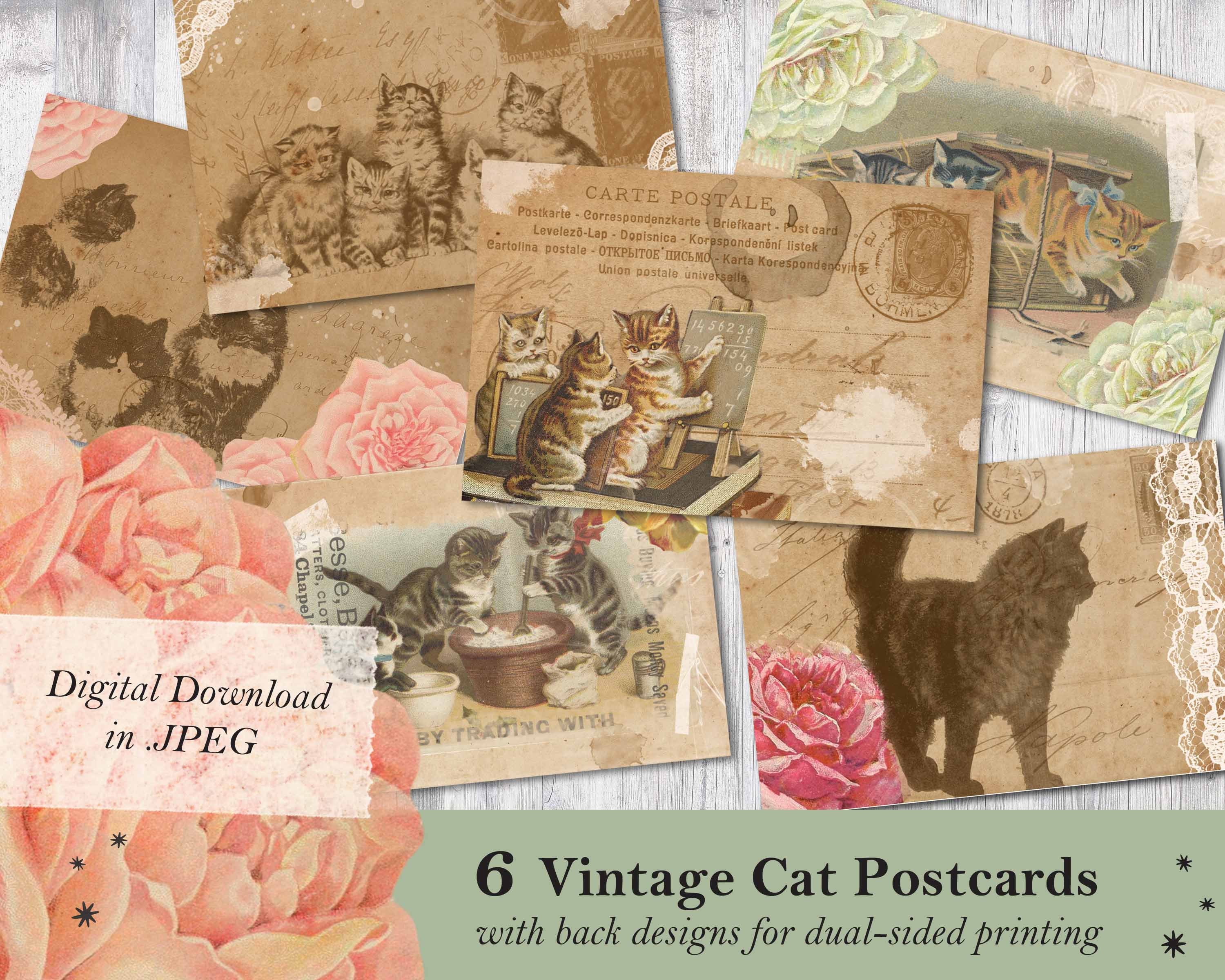 Junk Journal Cats Postcards, Printable Postcards Vintage, Shabby ...