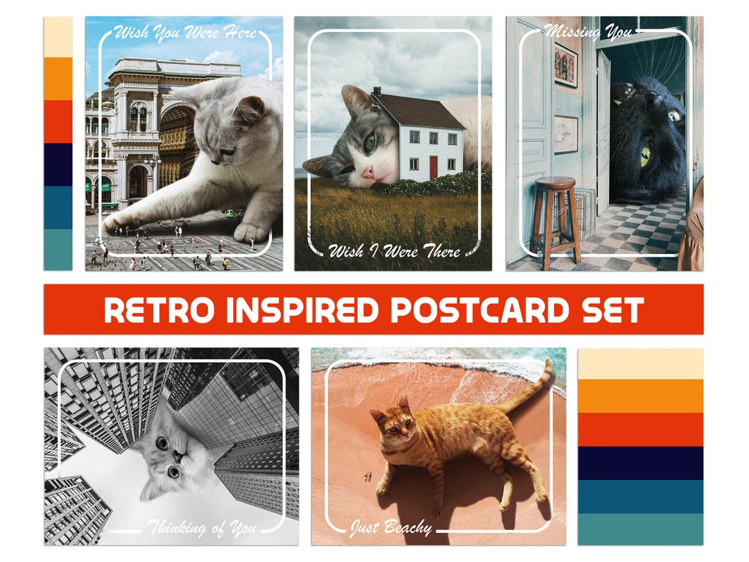 Retro Cat Postcard Set of 10, Vintage Travel Postcards, Cat Lover, Cat ...