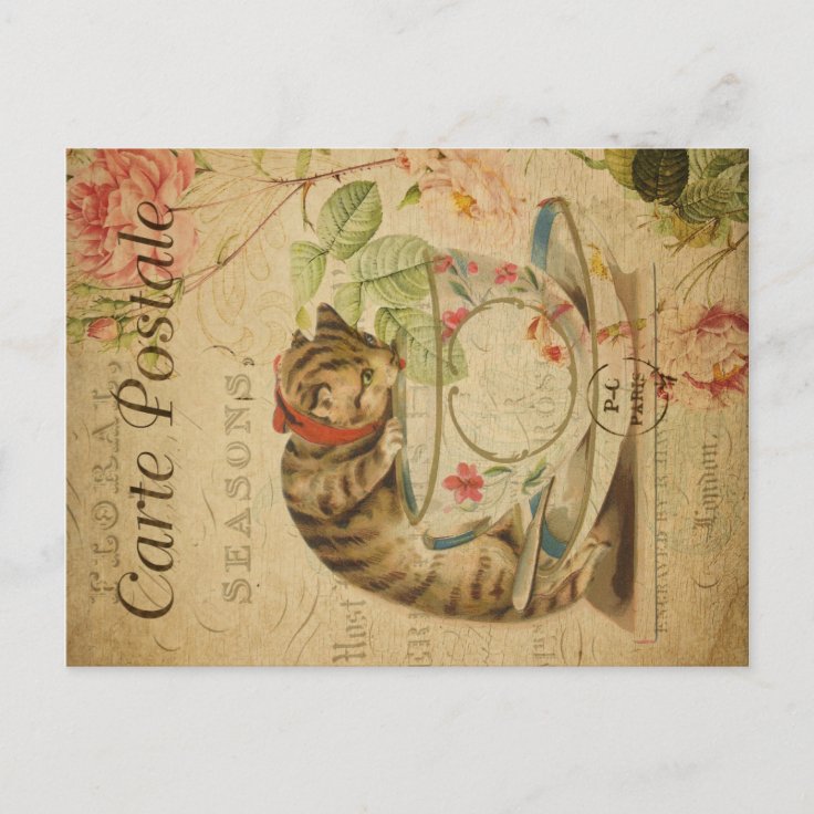 Vintage Cat Theme | Carte Postale | Cat & Teacup Postcard | Zazzle
