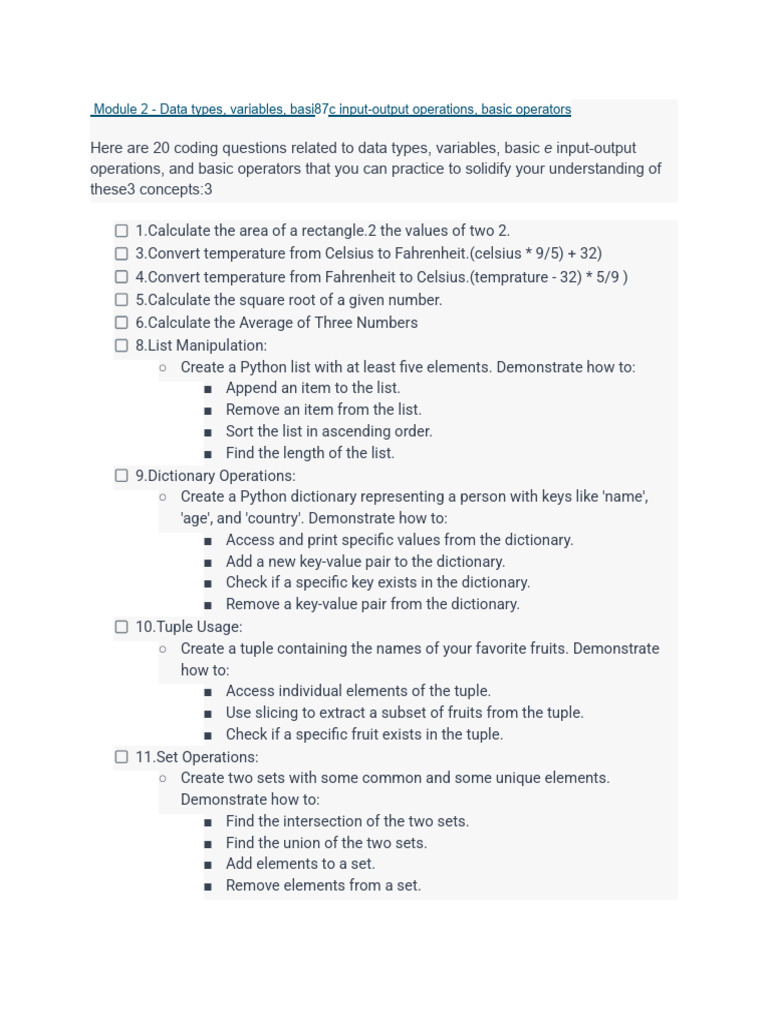 Module 2 - Data types, variables, basic input-output operations, basic ...