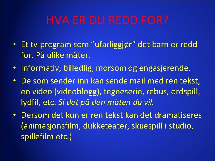 HVA ER DU REDD FOR Et tvprogram som
