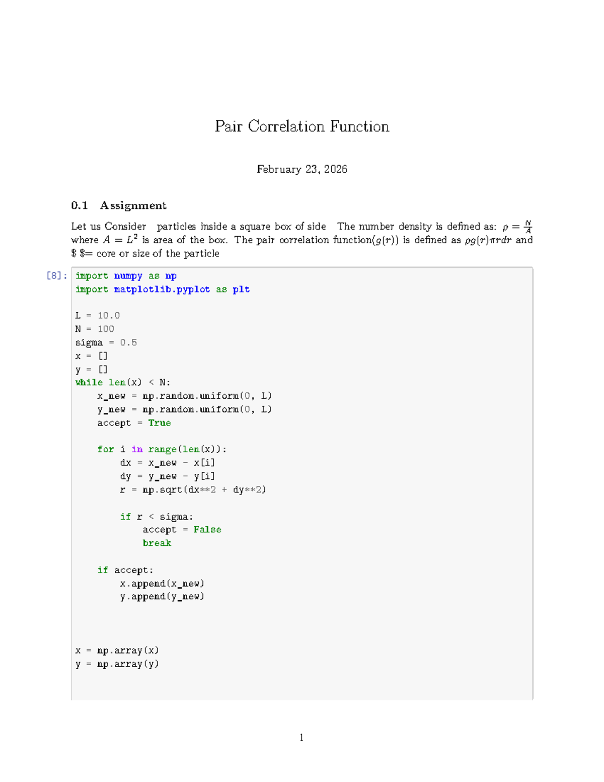 Pair Correlation Function (PHYS 101) - Assignment 0.1 Analysis - Studocu