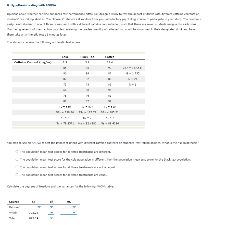 Solved ANOVA Hypothesis Test Worksheet 1. Are the means for | Chegg.com
