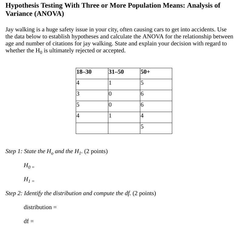 Solved Hypothesis Testing With Three or More Population | Chegg.com