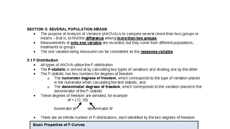 ANOVA Analysis of Several Population Means: Section 3 Notes - Studocu