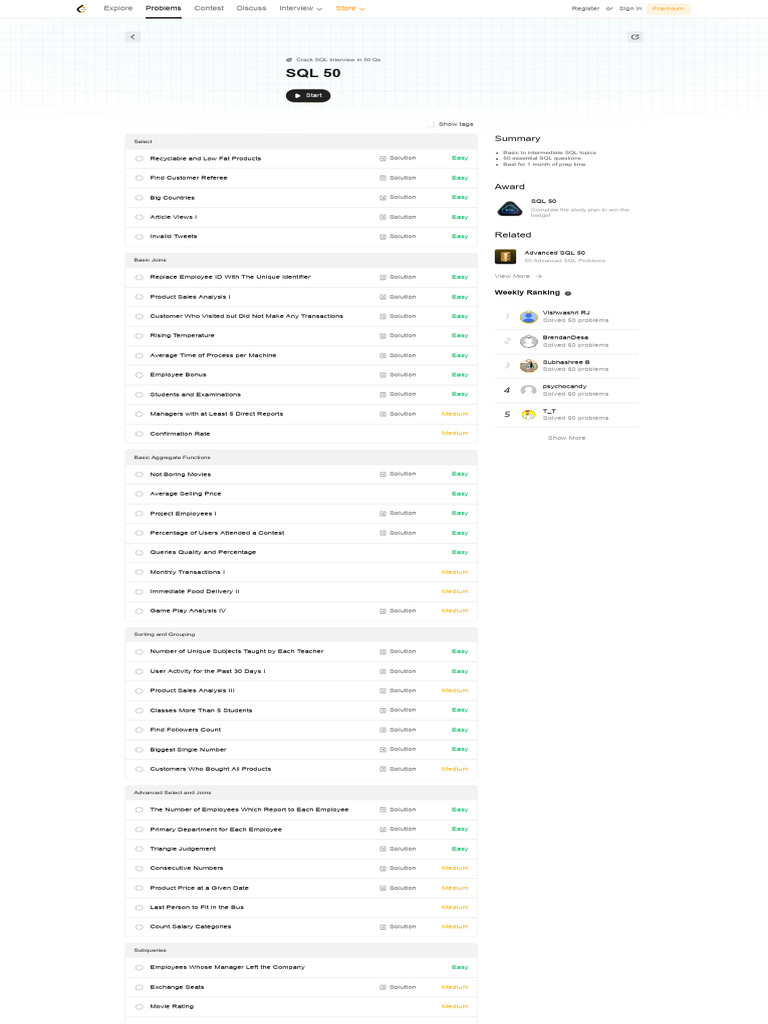 Leetcode All SQL Questions Solutions Notes | PDF
