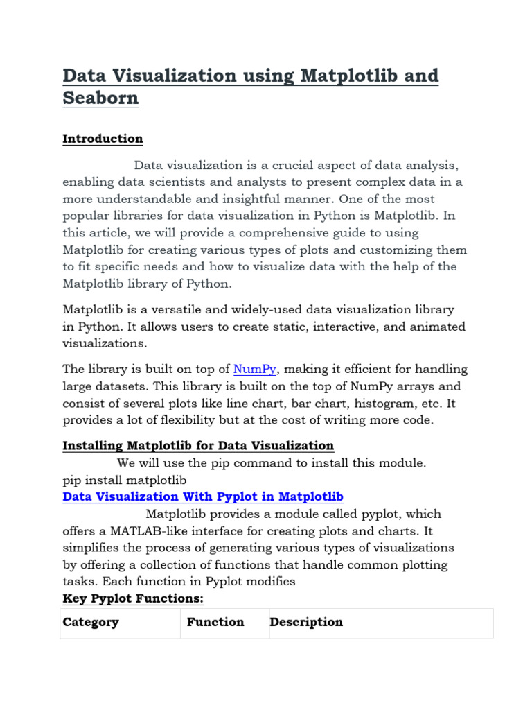 Data Visualization Using Matplotlib and Seaborn | PDF