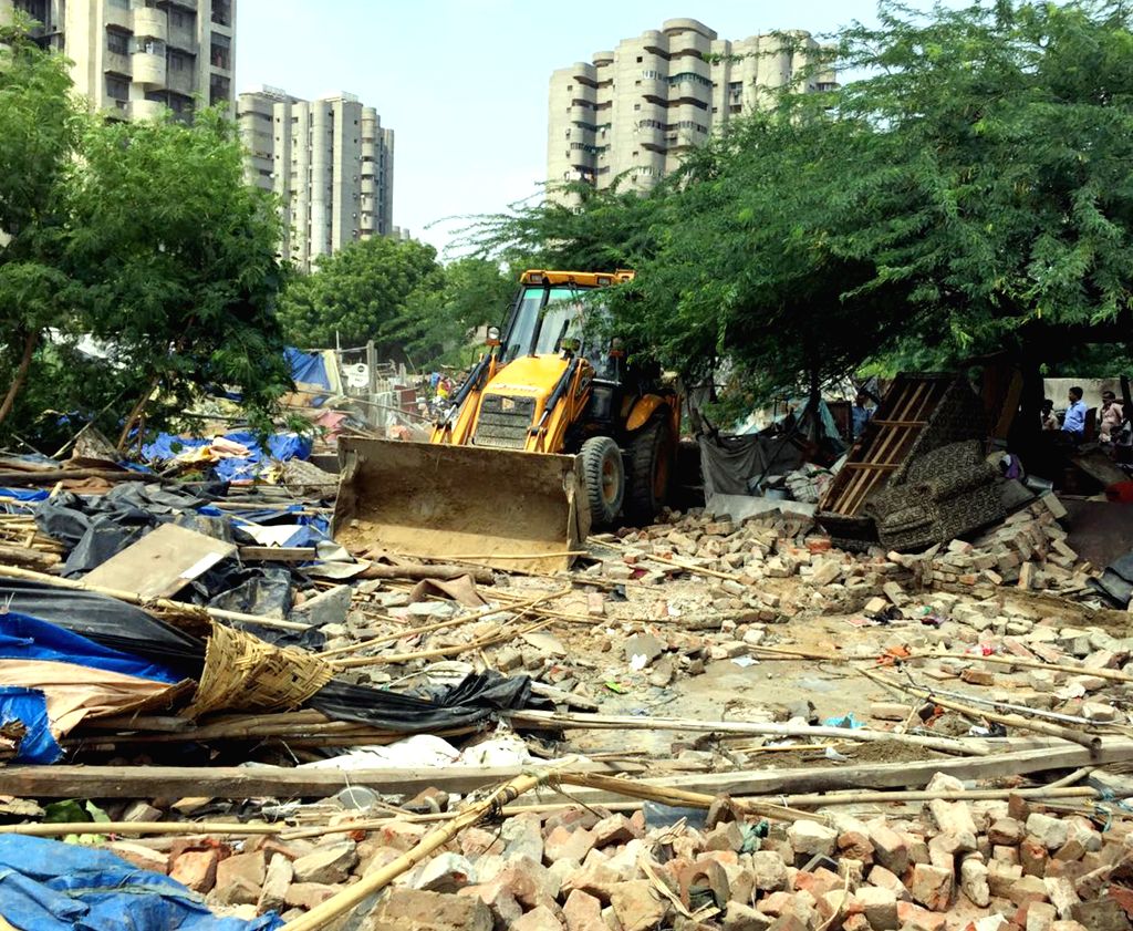 Demolished illegal colony being built near Pradhan Mantri Awas Yojana ...