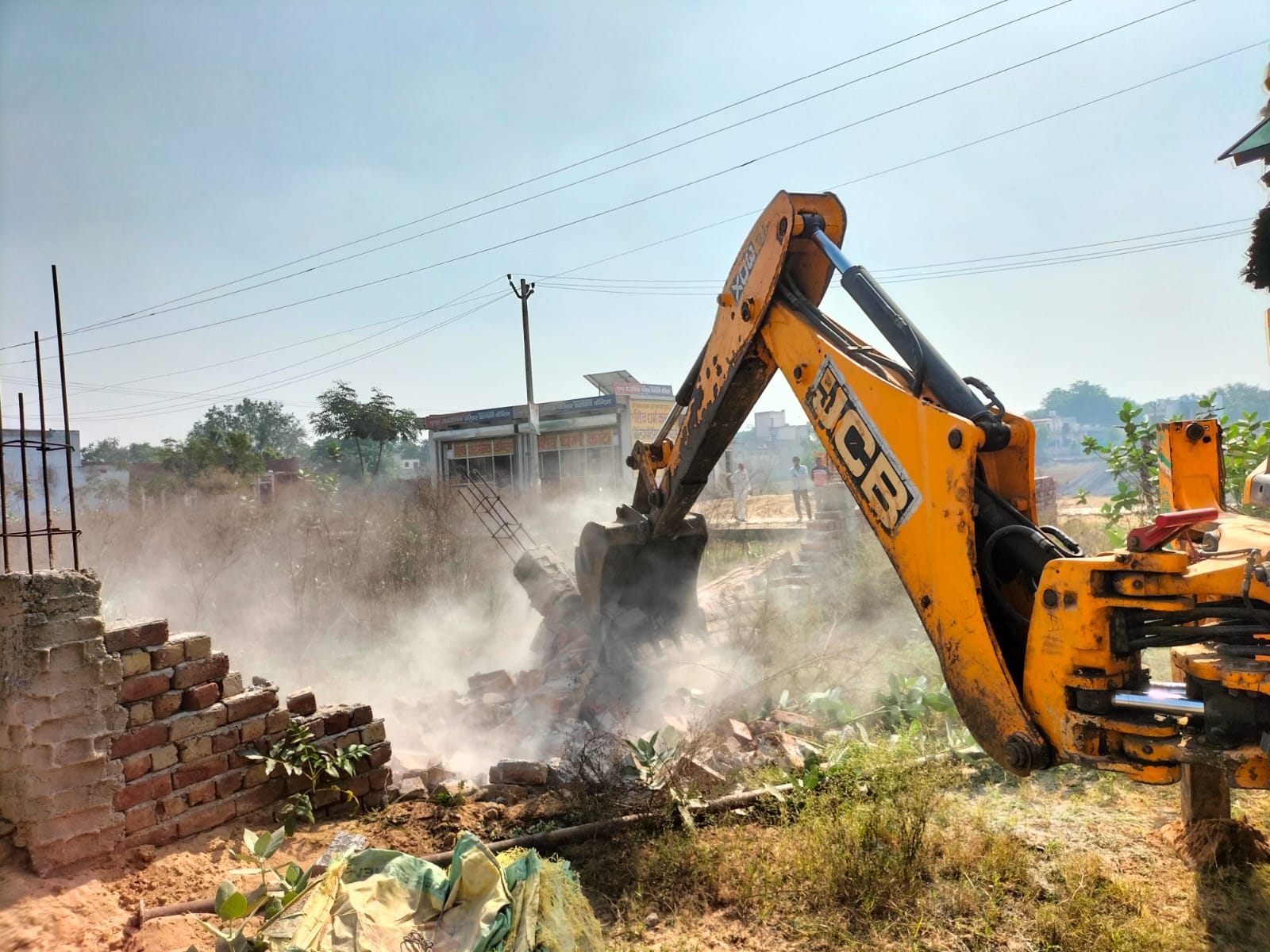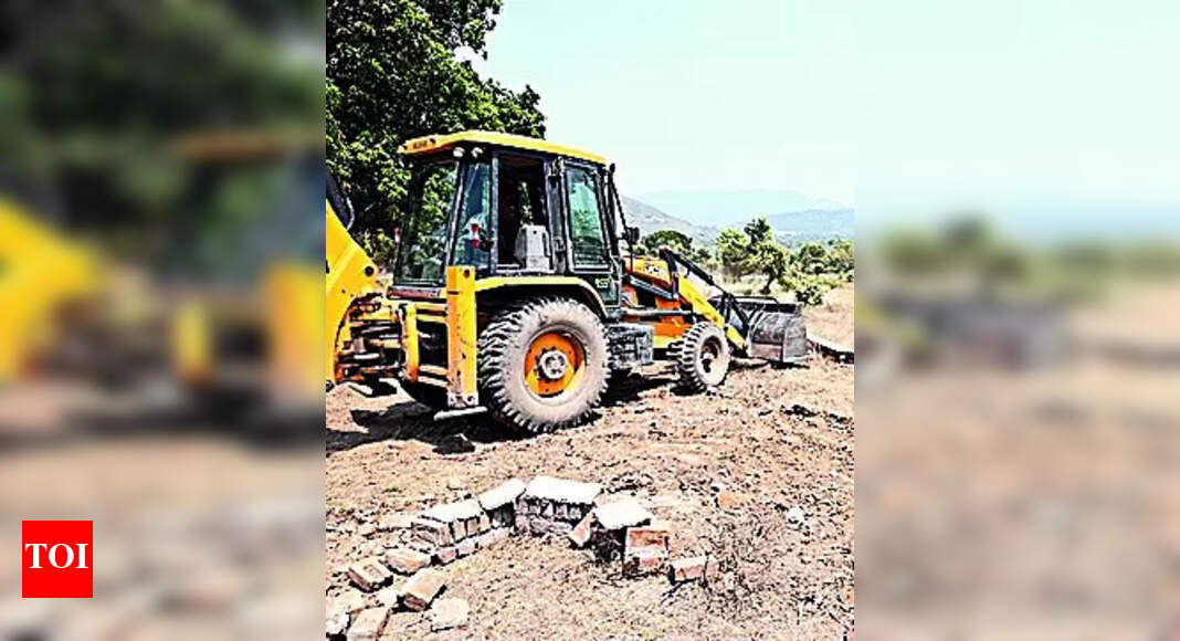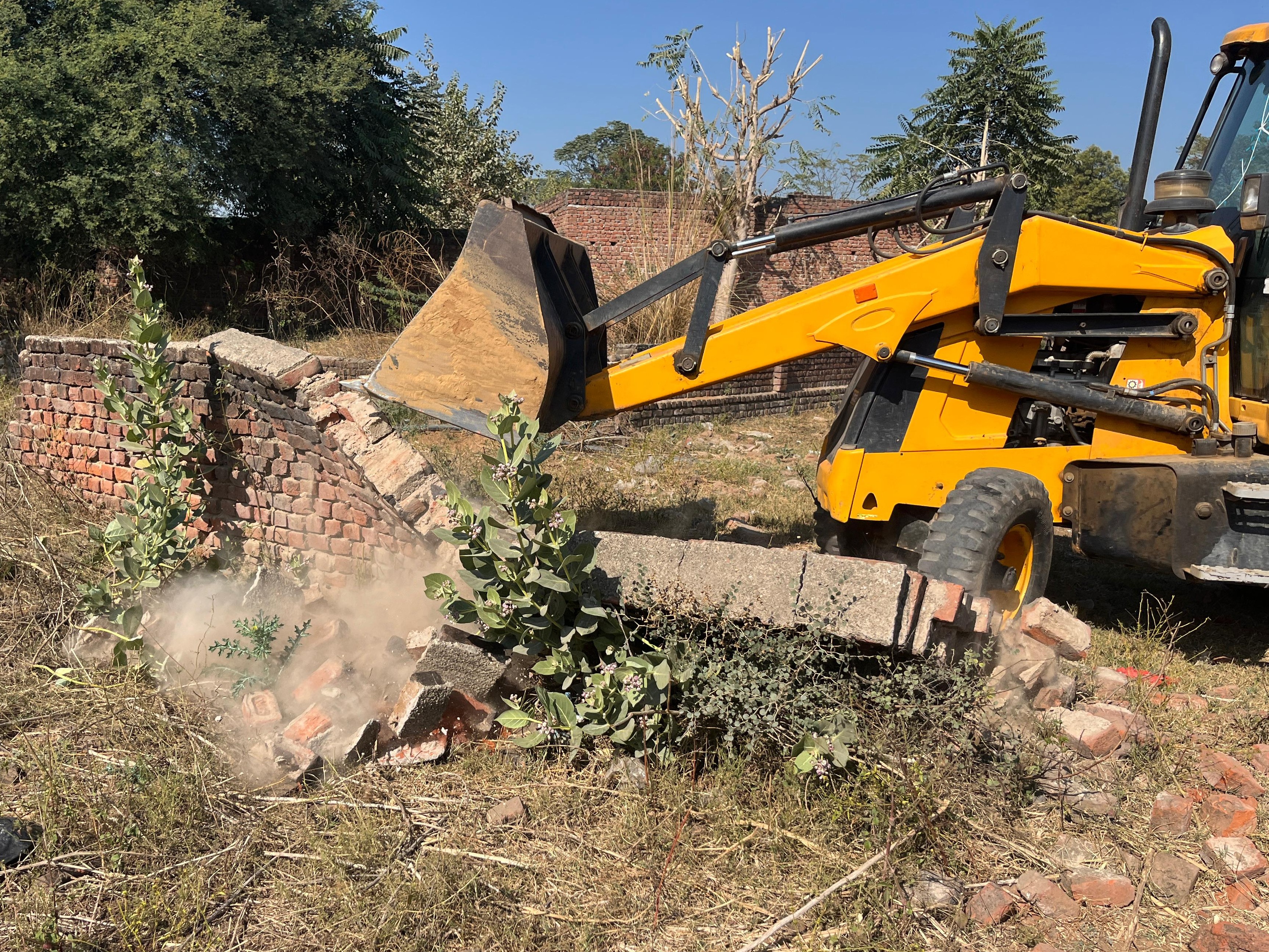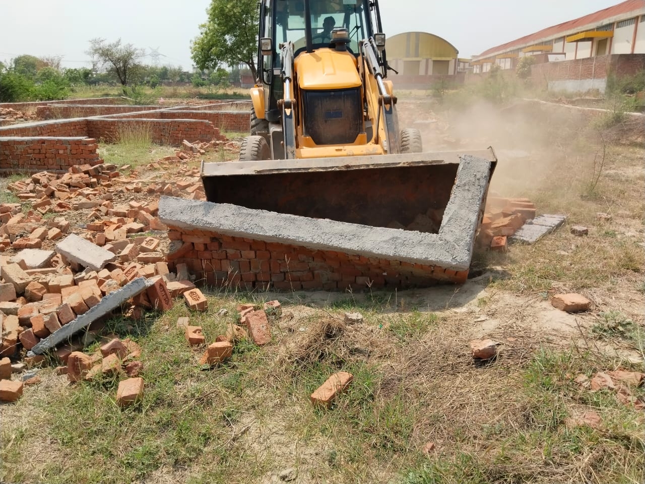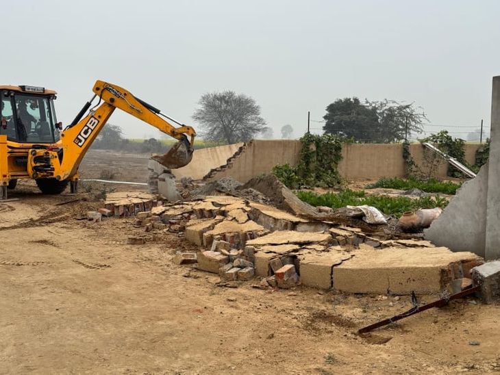 Bulldozer, boundary wall, foundation demolished on illegal colony in ...