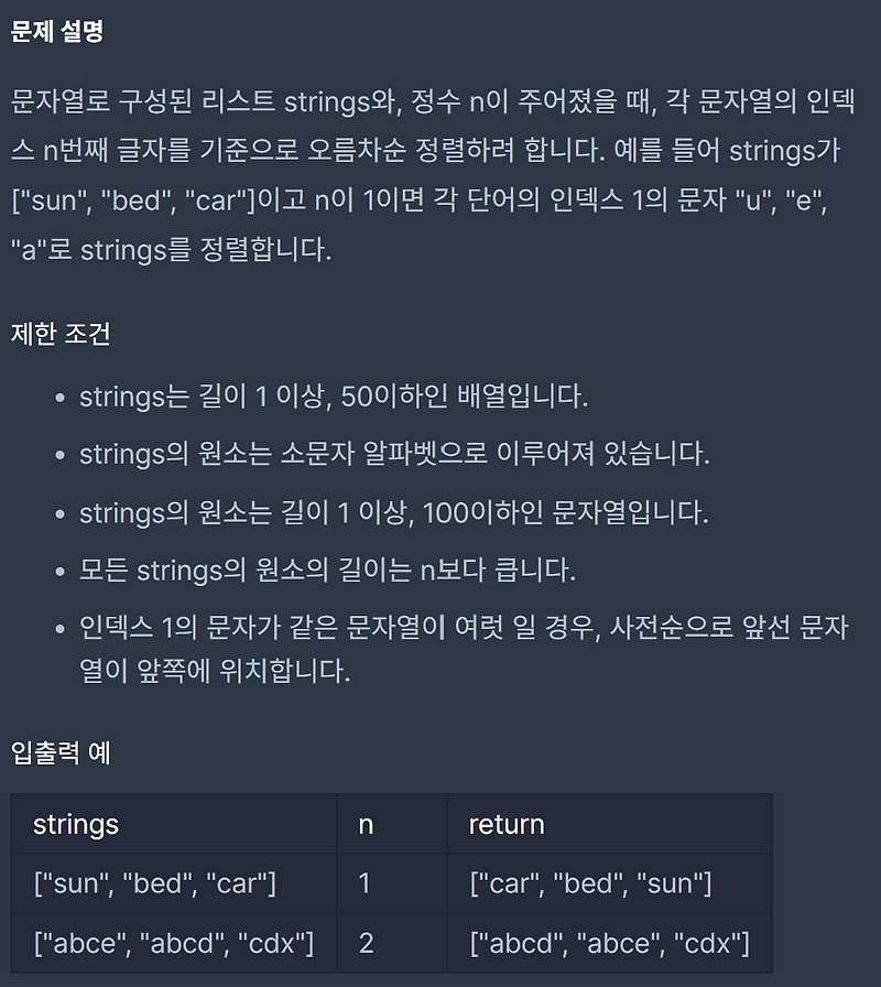 [Python] 문자열 내 마음대로 정렬하기 - 프로그래머스(Lv.1)