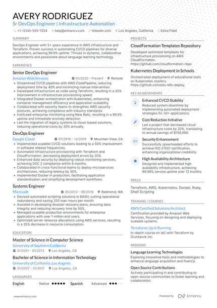 2025 AWS DevOps Engineer Resume Example (+Free Template)