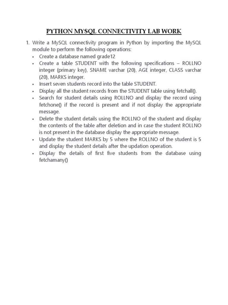 Python MySQL Connectivity Practice Questions (Class 12 CS 083) - Studocu