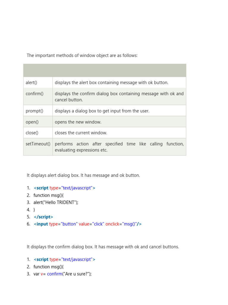 Window Object Methods in JavaScript | PDF | Window (Computing) | Button ...