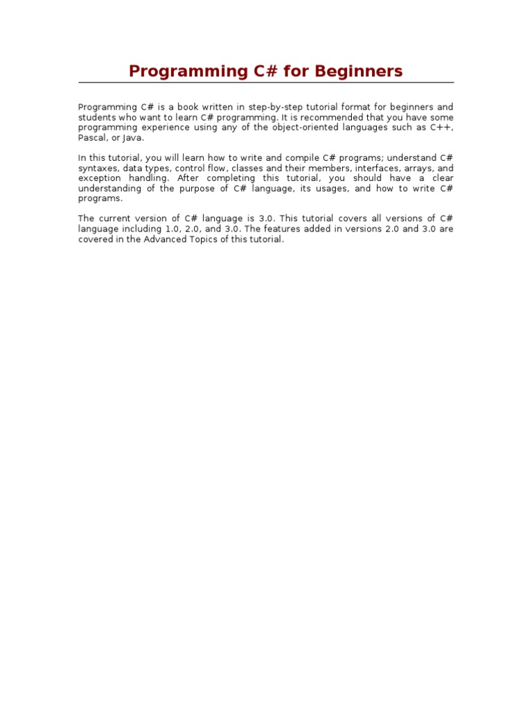 C# Tutorial For Beginners | PDF | C Sharp (Programming Language ...