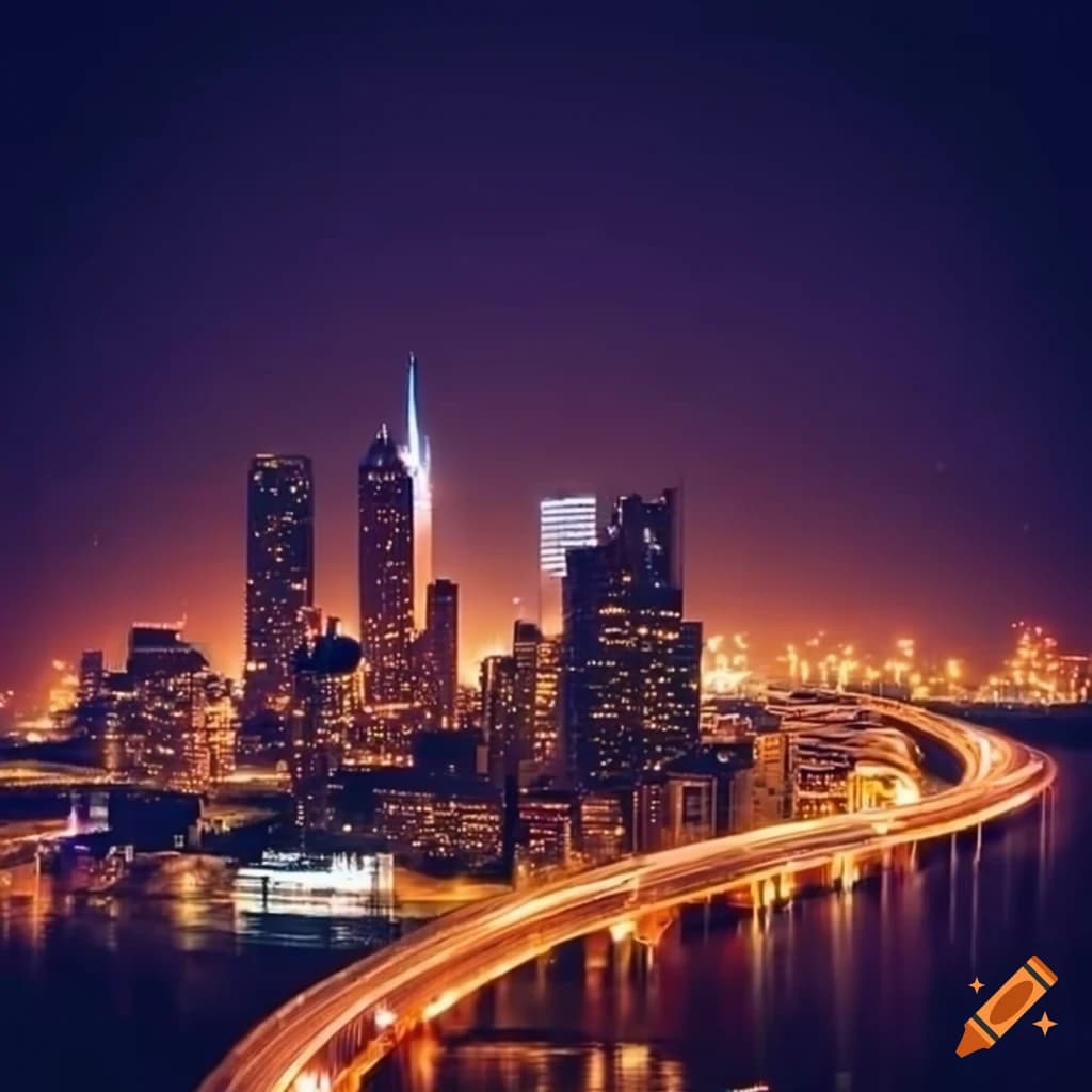 A city skyline at night, showcasing the mesmerizing glow of colorful ...
