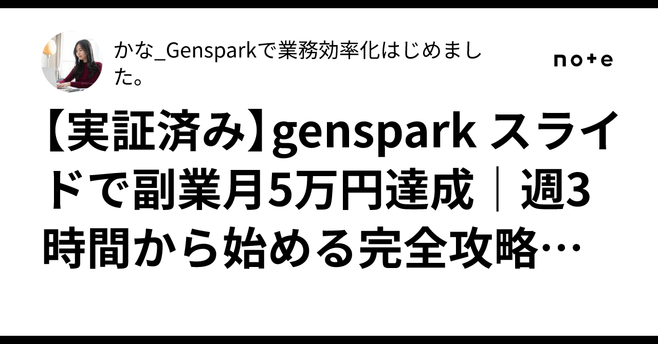 【実証済み】genspark スライドで副業月5万円達成|週3時間から始める完全攻略ガイド|かな_Gensparkで業務効率化はじめました。
