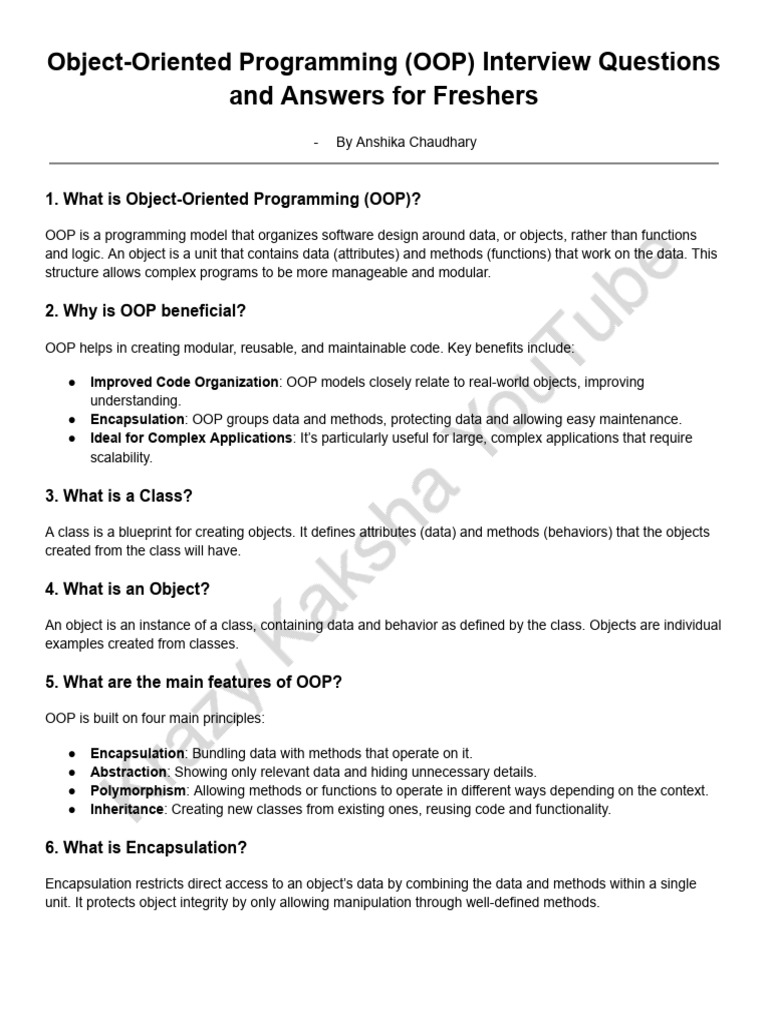 OOP Interview Questions for Freshers | PDF | Method (Computer ...