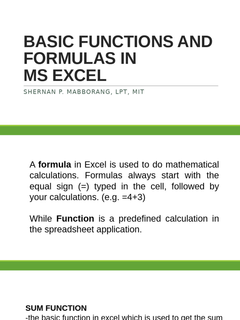 Basic Functions and Formulas in Excel 1 | PDF | Microsoft Excel ...