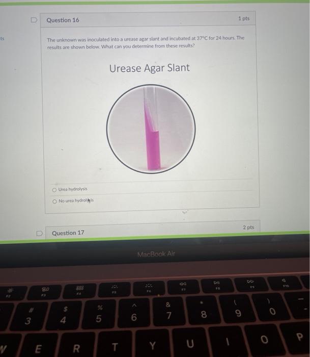Solved D Question 16 1 pts ts The unknown was inoculated | Chegg.com